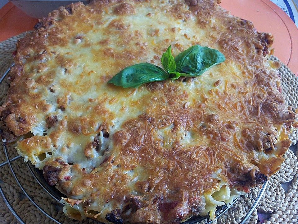 Im vorgeheizten Backofen bei 200°C den Auflauf ca. 45 Minuten backen. Die Kruste sollte anschließend goldgelb sein. Sofort servieren.