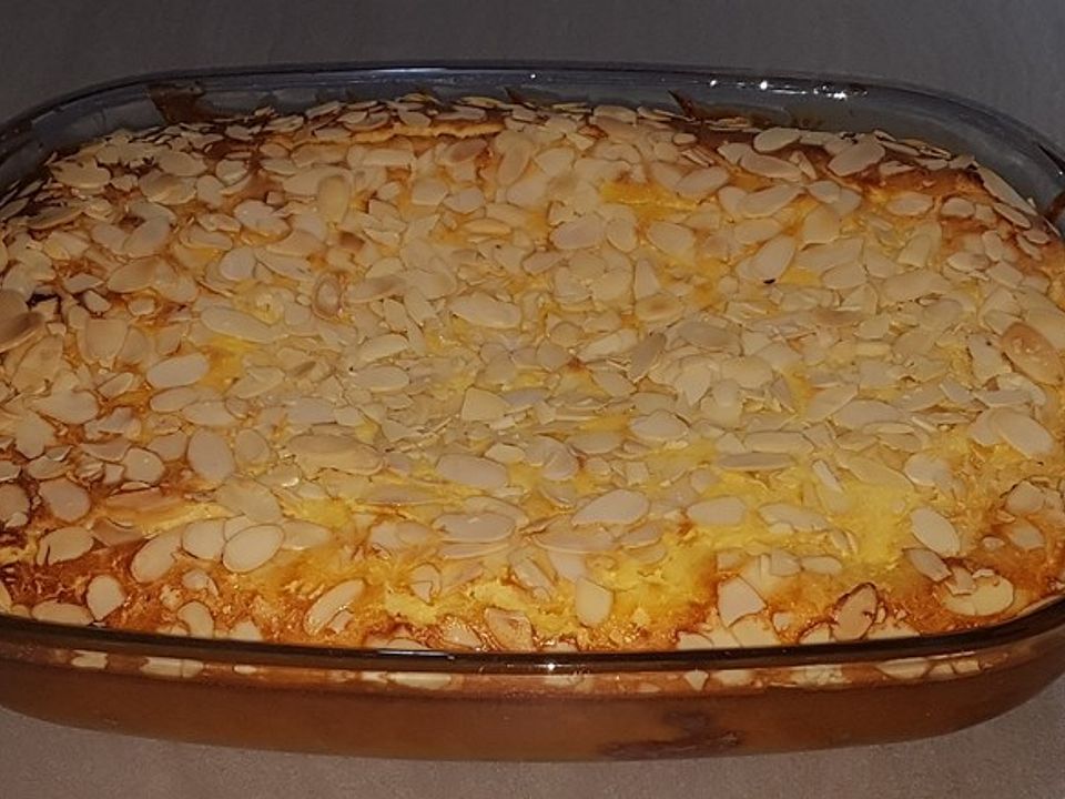 Die Palatschinken abwechselnd mit der Sauce in eine mit Olivenöl ausgepinselte Auflaufform füllen. Zum Abschluss geriebenen Käse darüber streuen.